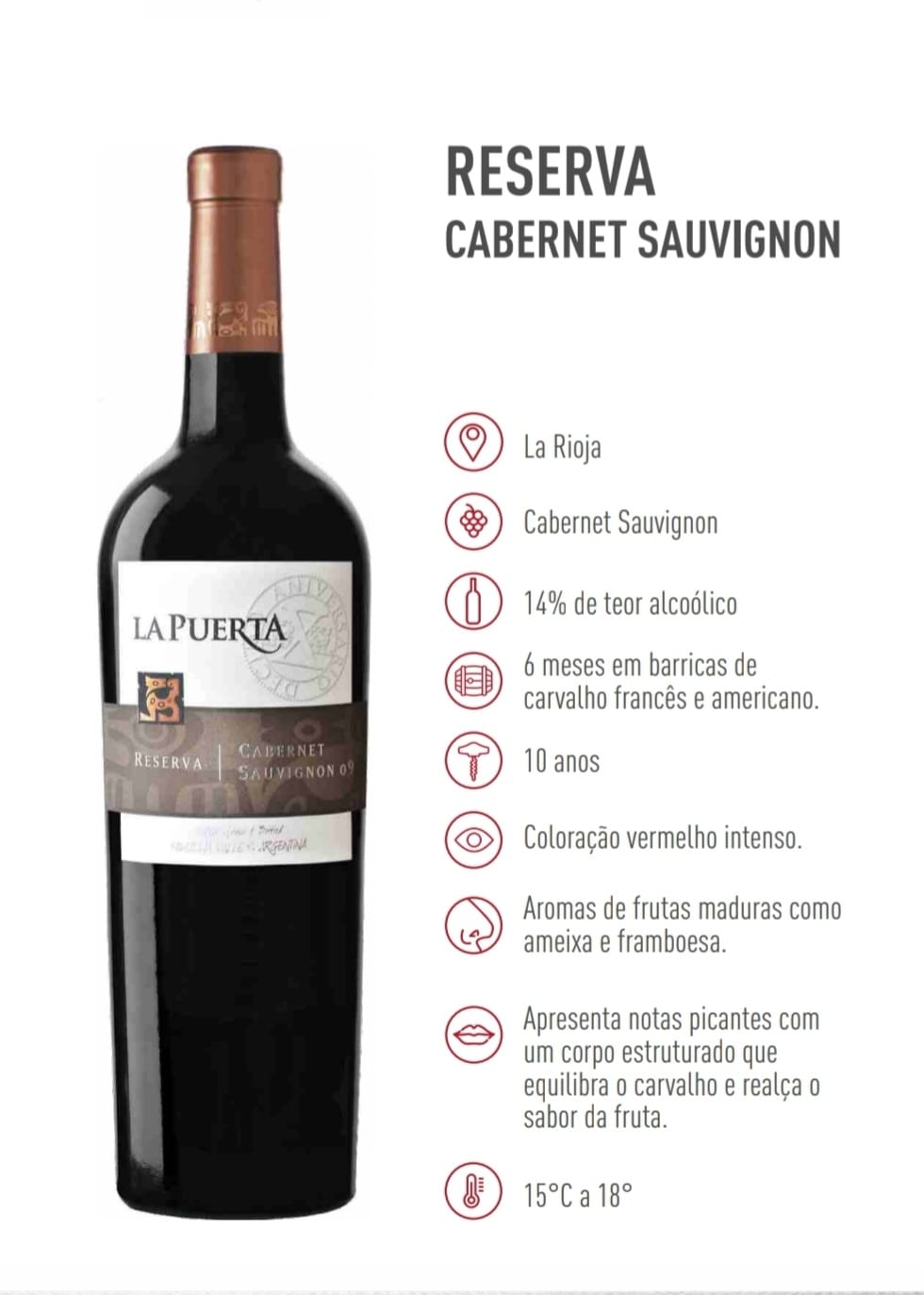 Ideal para harmonizar com carnes vermelhas, queijos curados ou pratos aromáticos, o La Puerta Reserva é um convite à exploração de sabores. Adicione esse vinho ao seu carrinho e eleve suas degustações a um novo patamar.