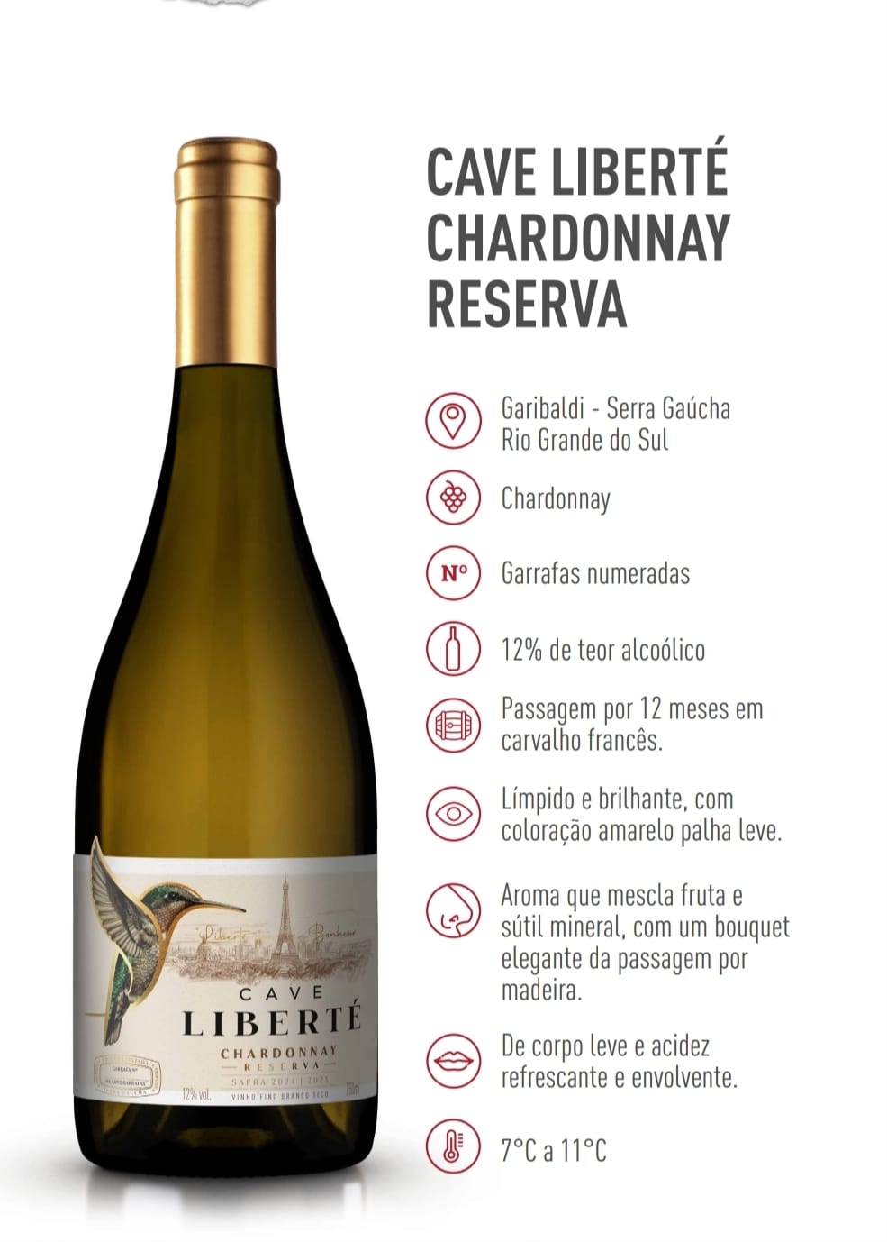 Vinho Branco Nacional Cave Liberté Reserva Chardonnay Seco 750ml