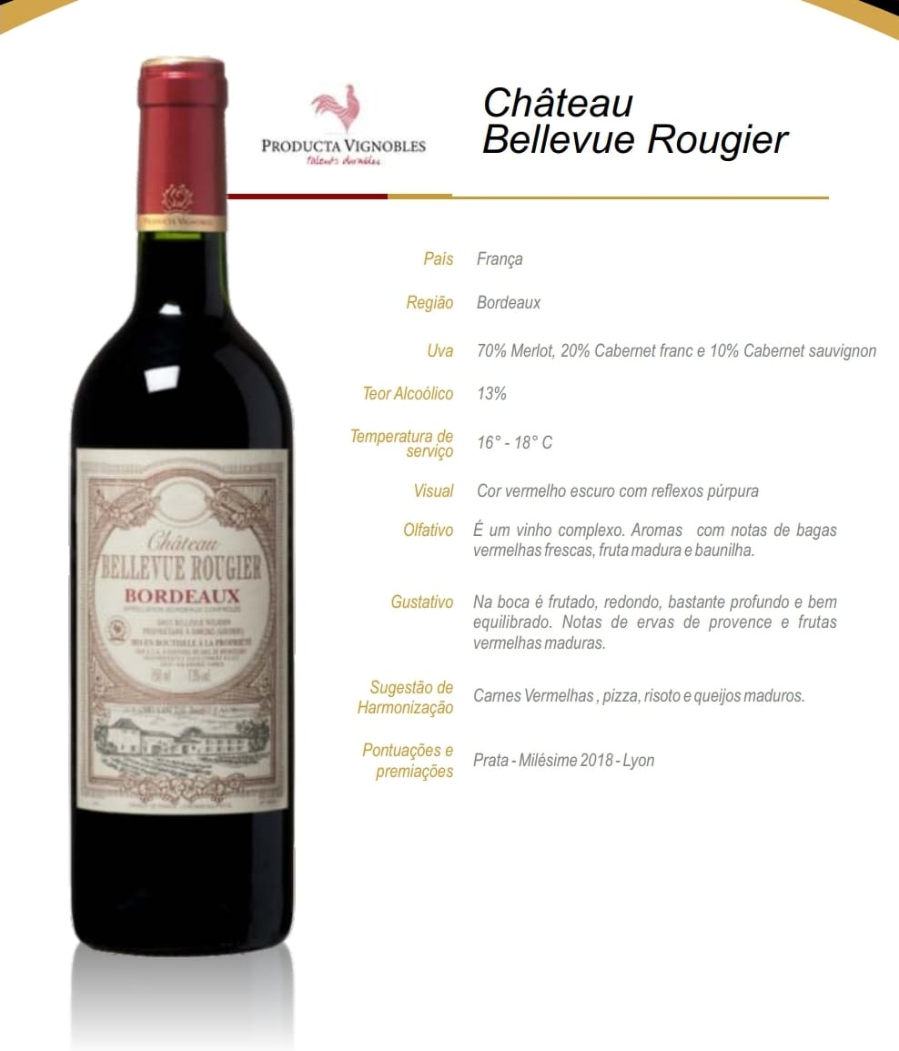 Vinho Francês Château Bellevue Rougier Tinto – AOC Bordeaux – 750ml