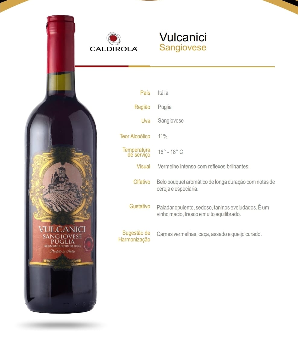 Vinho Italiano Vulcanici Sangiovese Puglia – 750ml