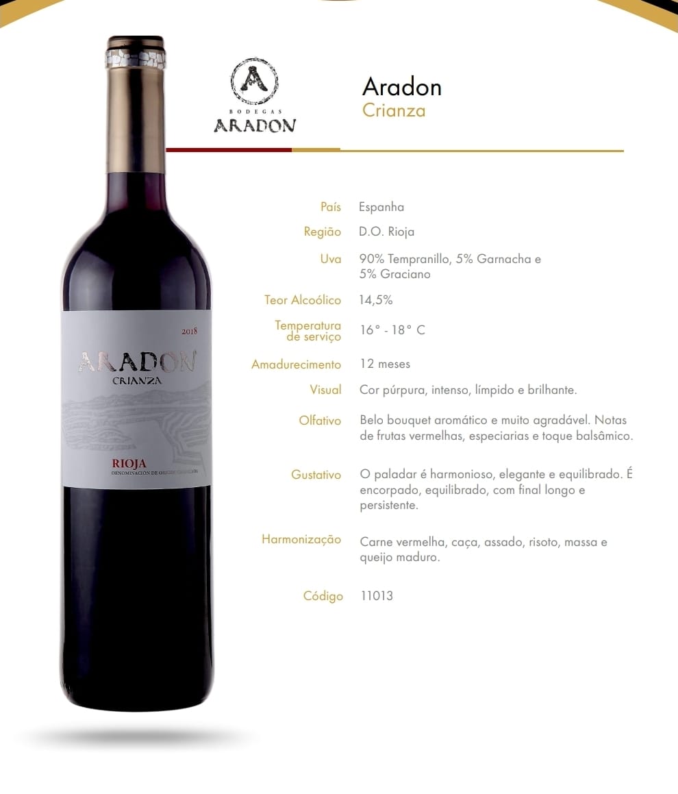 Vinho Tinto Espanhol Aradon Crianza D.O Rioja Seco 750ml