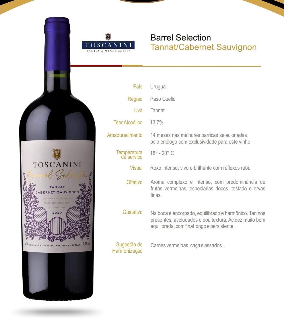 Vinho Tinto Uruguaio Toscanini Barrel Selection Especial Tannat e Cab. Sauvignon Seco 750ml